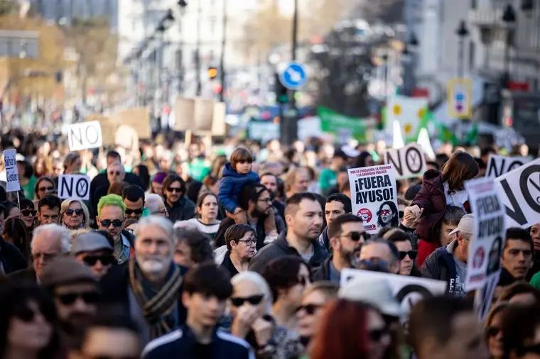 Την Κυριακή, περισσότεροι από 100.000 άνθρωποι διαδήλωσαν στη Μαδρίτη υπερασπιζόμενοι τη δημόσια εκπαίδευση, διεκδικώντας μεγαλύτερη χρηματοδότηση και καλύτερες συνθήκες για εκπαιδευτικούς και μαθητές. Η διαμαρτυρία, που διοργανώθηκε από διάφορες συλλογικότητες, άσκησε κριτική στην εκπαιδευτική πολιτική της περιφερειακής κυβέρνησης, με ισχυρή υποστήριξη από συνδικάτα και εκπαιδευτικές ενώσεις, επισημαίνοντας την πιθανότητα γενικών απεργιών εάν δεν ικανοποιηθούν τα αιτήματά τους.