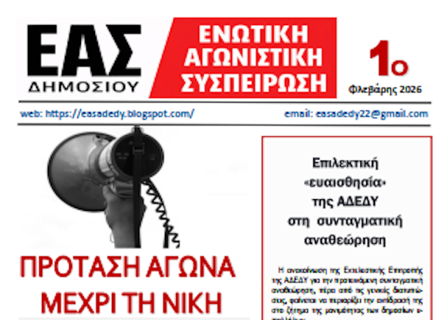 ΑρχικήΑΝΑΚΟΙΝΩΣΕΙΣ ΑΝΑΚΟΙΝΩΣΕΙΣ Το 1ο ενημερωτικό φυλλάδιο της Ενωτικής Αγωνιστικής Συσπείρωσης Δημοσίου By admin 24 Φεβρουαρίου 2026 0 22 FacebookXPinterestWhatsApp Εκδόθηκε το πρώτο ηλεκτρονικό ενημερωτικό φυλλάδιο της Ενωτικής Αγωνιστικής Συσπείρωσης Δημοσίου. μερίδιο FacebookXPinterestWhatsApp Προηγούμενο άρθροΕΛΜΕ Κέρκυρας: Κάλεσμα την Πέμπτη 26/2 στα δικαστήρια για τις διώξεις συνδικαλιστώνΕπόμενο άρθροΑνυπότακτη Κίνηση: Για τα αποτελέσματα του Συνεδρίου του ΕΚΑ adminhttps://workersnews.gr Related Articles ΑΠΟ ΤΟΥΣ ΧΩΡΟΥΣ ΔΟΥΛΕΙΑΣ Απεργιακή κινητοποίηση την Δευτέρα 23 Μαρτίου στη MEDICHROM ΑΝΑΚΟΙΝΩΣΕΙΣ Πότε θα σπάσει τη σιωπή της η ΑΔΕΔΥ για τον πόλεμο και την ακρίβεια; ΑΝΑΚΟΙΝΩΣΕΙΣ Ομιλία της Β. Πασχάλη στην εκδήλωση της Παρέμβασης για την υγεία ΑΦΗΣΤΕ ΜΙΑ ΑΠΑΝΤΗΣΗ Ακύρωση απάντησης Σχόλιο: εισάγετε το σχόλιό σας! Όνομα: παρακαλώ εισάγετε το όνομά σας εδώ Email: έχετε εισάγει εσφαλμένη διεύθυνση ηλεκτρονικού ταχυδρομείου! παρακαλώ εισάγετε εδώ την ηλεκτρονική σας διεύθυνση Ιστοσελίδα: αποθηκεύστε το όνομα, το ηλεκτρονικό ταχυδρομείο και τον ιστότοπό μου σε αυτό το πρόγραμμα περιήγησης για την επόμενη φορά που θα σχολιάσω. Stay Connected0ΥποστηρικτέςΚάντε Like0ΑκόλουθοιΑκολουθήστε0ΣυνδρομητέςΓίνετε συνδρομητής - Advertisement - Latest Articles ΑΠΟ ΤΟΥΣ ΧΩΡΟΥΣ ΔΟΥΛΕΙΑΣ Απεργιακή κινητοποίηση την Δευτέρα 23 Μαρτίου στη MEDICHROM ΑΝΑΚΟΙΝΩΣΕΙΣ Πότε θα σπάσει τη σιωπή της η ΑΔΕΔΥ για τον πόλεμο και την ακρίβεια; ΑΝΑΚΟΙΝΩΣΕΙΣ Ομιλία της Β. Πασχάλη στην εκδήλωση της Παρέμβασης για την υγεία ΣΤΟ ΔΡΟΜΟ Μεγάλη αντιπολεμική συγκέντρωση χθες στο Σύνταγμα και πορεία στην Πρεσβεία των ΗΠΑ ΑΝΑΚΟΙΝΩΣΕΙΣ Κυκλοφόρησε το 2ο ηλεκτρονικό ενημερωτικό φυλλάδιο της Ενωτικής Αγωνιστικής Συσπείρωσης Δημοσίου. Φόρτωση περισσοτέρων