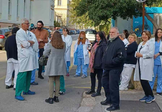 Στη συγκέντρωση των εργαζομένων που πραγματοποιήθηκε στην είσοδο του νοσοκομείου παρευρέθηκε και απηύθυνε χαιρετισμό η Βιβή Πασχάλη, μέλος του Γενικού Συμβουλίου της ΑΔΕΔΥ και εκπρόσωπος της Ενωτικής Αγωνιστικής Συσπείρωσης Δημοσίου.